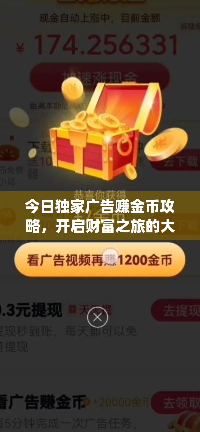 随着互联网的普及和科技的飞速发展,广告行业也在不断创新和变革,我们将探讨一种全新的赚钱方式——“今日最新广告赚金币”,这是一种通过参与观看广告,获取金币奖励的方式,让你在享受信息的同时,也能获得实实在在的收益。